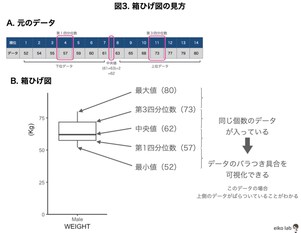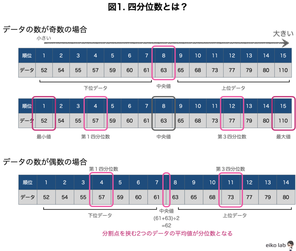 箱ひげ図を描くのに必要な四分位点(quartile)とは?