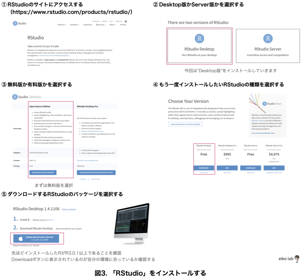 Desktopタイプは自分が持っているディバイスにインストールしてRStudioを使う