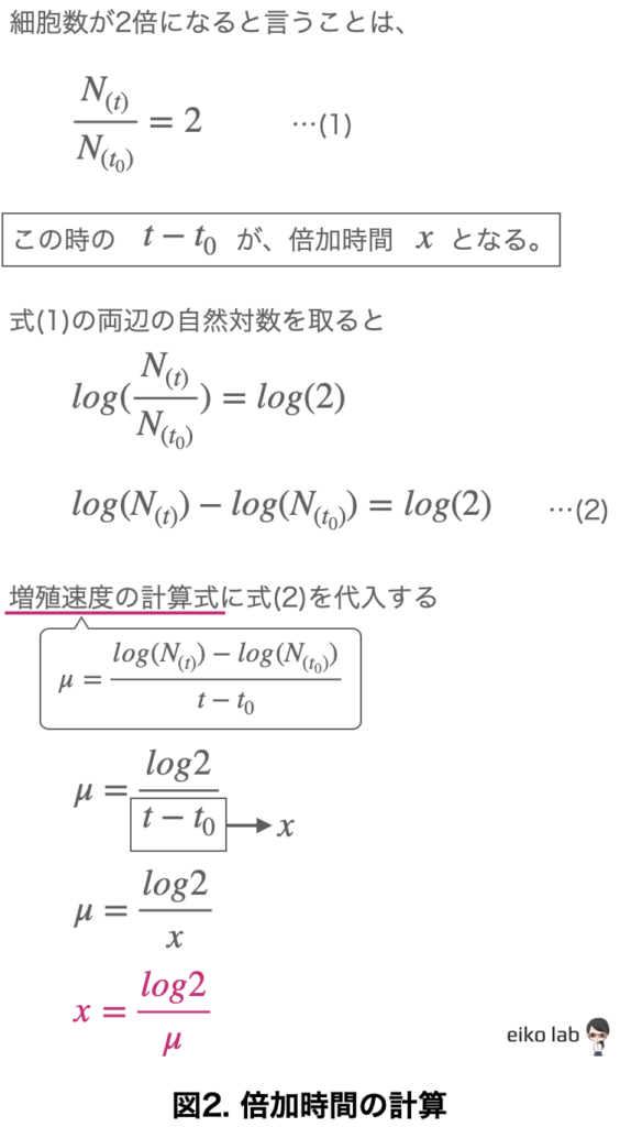 倍加時間は細胞数が2倍になるために要する時間でした。