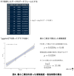 最小二乗法を使って増殖速度と倍加時間を計算する