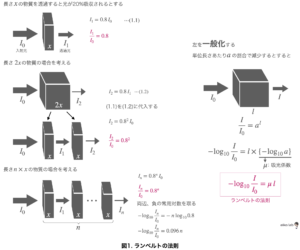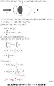 教科書ではランベルト・ベールの法則の式しか示されないことが多く、どのように導出するかは書いてありません。