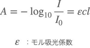 この時の比例定数(ε)はl = 1 cmの時の希薄溶液に対する単位濃度あたりの吸光度を示しています。