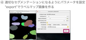- 適切なセグメンテーションができたら、exportボタンを押して、ラベルマップ画像を作る