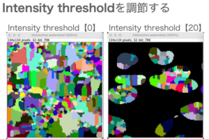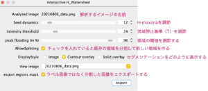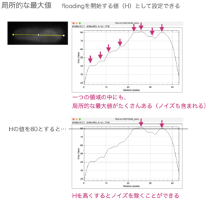 Interactive Wateshedを使うときに知っておきたい値としては、閾値と局所的な最大値です。
