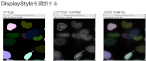 分割がどのように行われているかの表示方法を変えることができます。Imageでは、セグメンテーションのラベルマップをそのまま表示、contour overlayでは領域の輪郭を元画像にオーバーレイ、solid overlayでは領域の形状を元画像にオーバーレイ表示されます。![]()