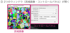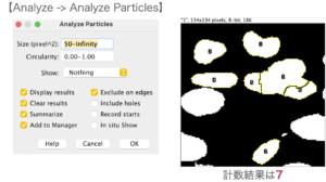二値画像に分割線が入ったものが表示されます。ImageJでさらに解析できる形になります。![]()
