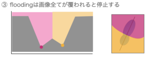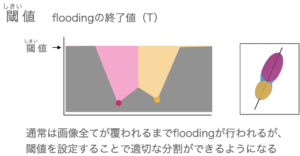 floodingは画像全体が覆われるまで行われますが、閾値を設定することで指定した領域だけを分割することができます。