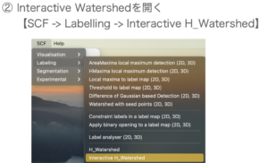 - メニュー->SCF -> labelling -> Interactive H-Watershedで立ち上げる