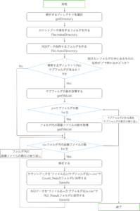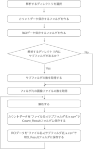 「解析」〜「計数結果をcsvファイルに書き出す」ステップは、画像の枚数だけ繰り返し処理することになります。