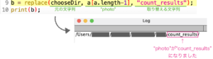 "photo"の部分を"count_results"に書き換えた文字列を変数"b"に入れました。