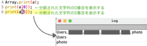 4行目にsplit関数を使って分割できているかを確認するために、"Array.print"関数を使って出力しています。