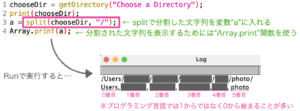 3行目にsplit関数を使って、変数"chooseDir"に入っている文字列を"/"で分割しました。