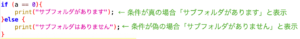 "true"が返ってくる場合は、命令文1(「サブフォルダがあります」)が実行され、"false"の場合は命令文2(「サブフォルダはありません」)が実行される仕組みです。