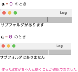 作ったif文で「サブフォルダの有無」を分別できるようになりました。