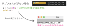 取得したファイルリストの「◯番目」を表示させるためには、変数名の後ろに"[◯]"をつけます。