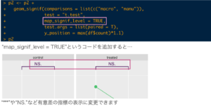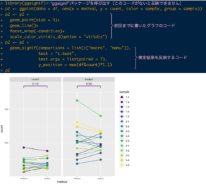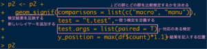 その時に忘れてはいけないのは、"library(ggsignif)"でパッケージを呼び出しておくことです。