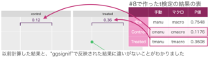 "geom_signif"で出力された値と、事前に検定した結果が合っているのかを確認してみましょう。