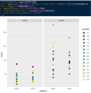 そして準備したデータフレームを使って、描いたドットプロットがこちらです。